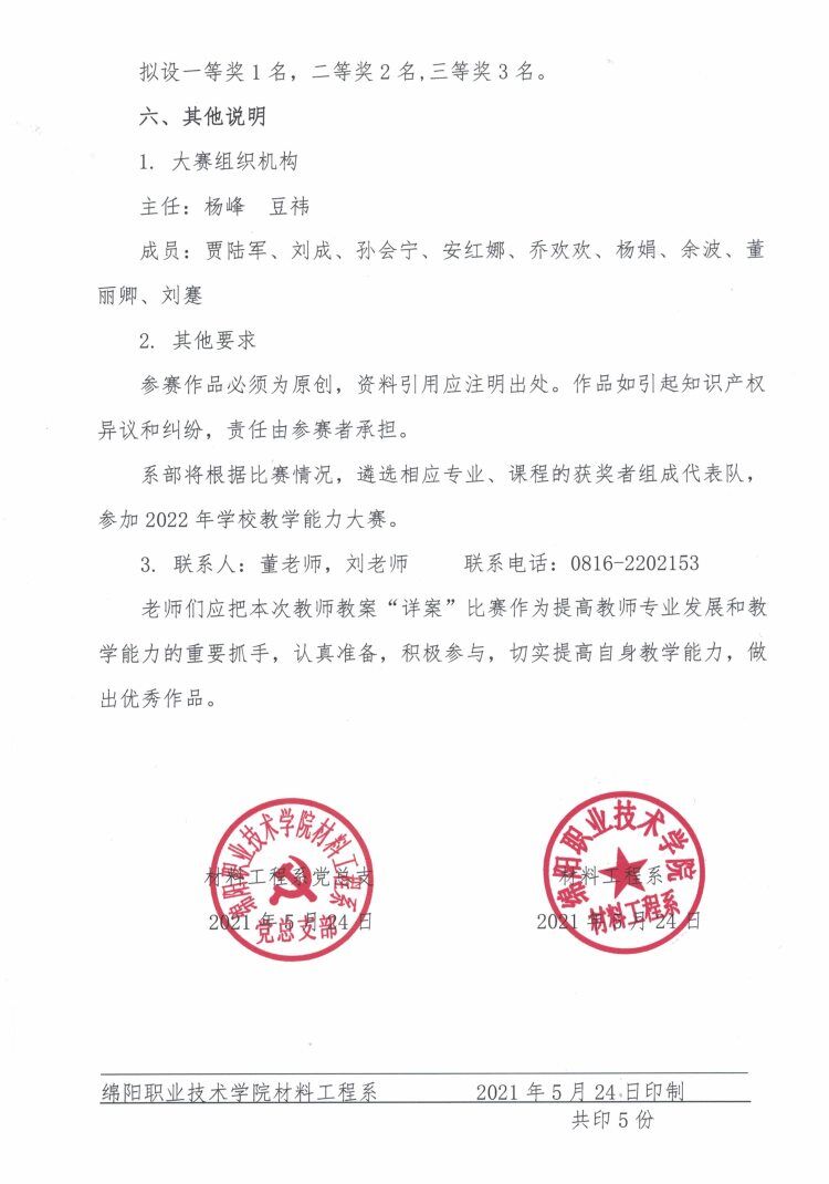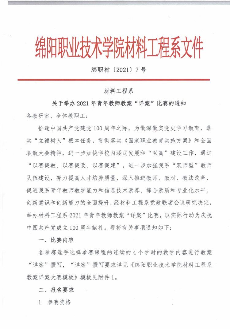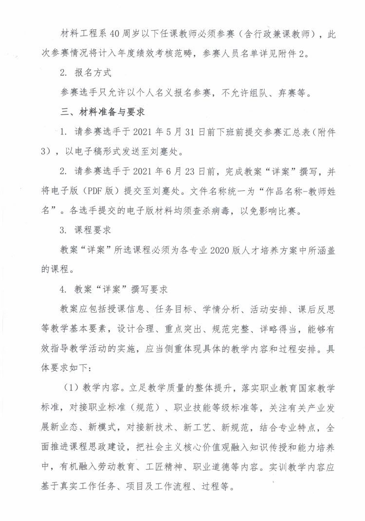 材料工程系关于举办2021年青年教师教案“详案”比赛的通知
