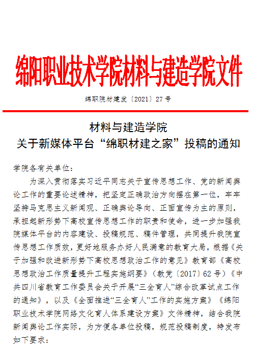 williamhill威廉希尔官网 关于新媒体平台“绵职材建之家”投稿的通知