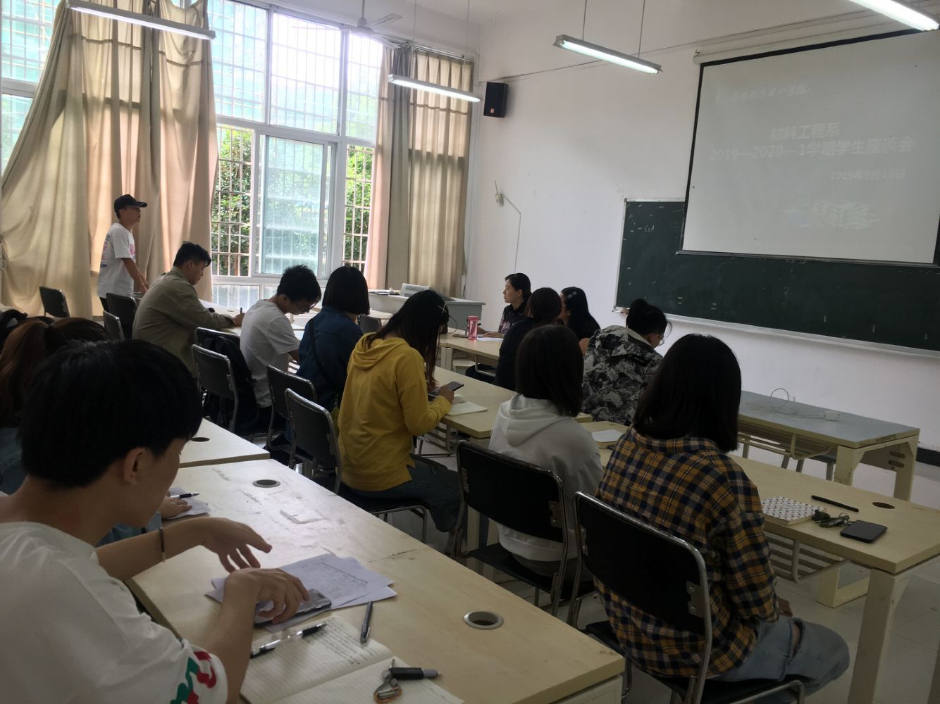 9月18日下午,按照本期材料工程系教学督导工作计划,教学督导工作员工座谈会在csb105举行,材料工程系副主任贾陆军、教学干事刘蹇、督导组组长刘成、督导组成员徐黎黎、孙会宁老师和材料系在校17级、18级各班级班团干部参加了本次座谈会,孙会宁老师主持了本次会议。