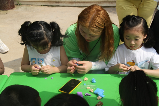 在支教过程中,小朋友们认真跟着大哥哥大姐姐学习,拿着五颜六色的软陶泥切、捏、揉、搓开始创造自己喜爱的作品,于是,五颜六色的软陶将大家带进了轻松愉悦的世界。小朋友们围坐在一起,发挥天马行空的想象,有的捏植物,有的捏小动物,还有的捏花盆,其中不乏有心灵手巧的小朋友,做出了“可口美味”的汉堡、栩栩如生的卡通人物、小动物,还有各式各样的生活用品。