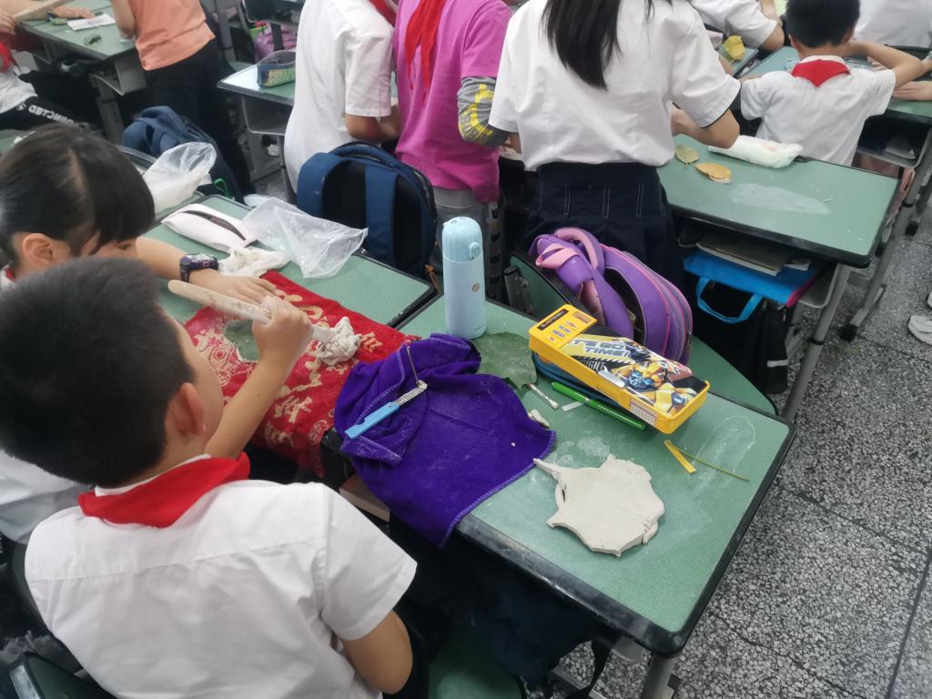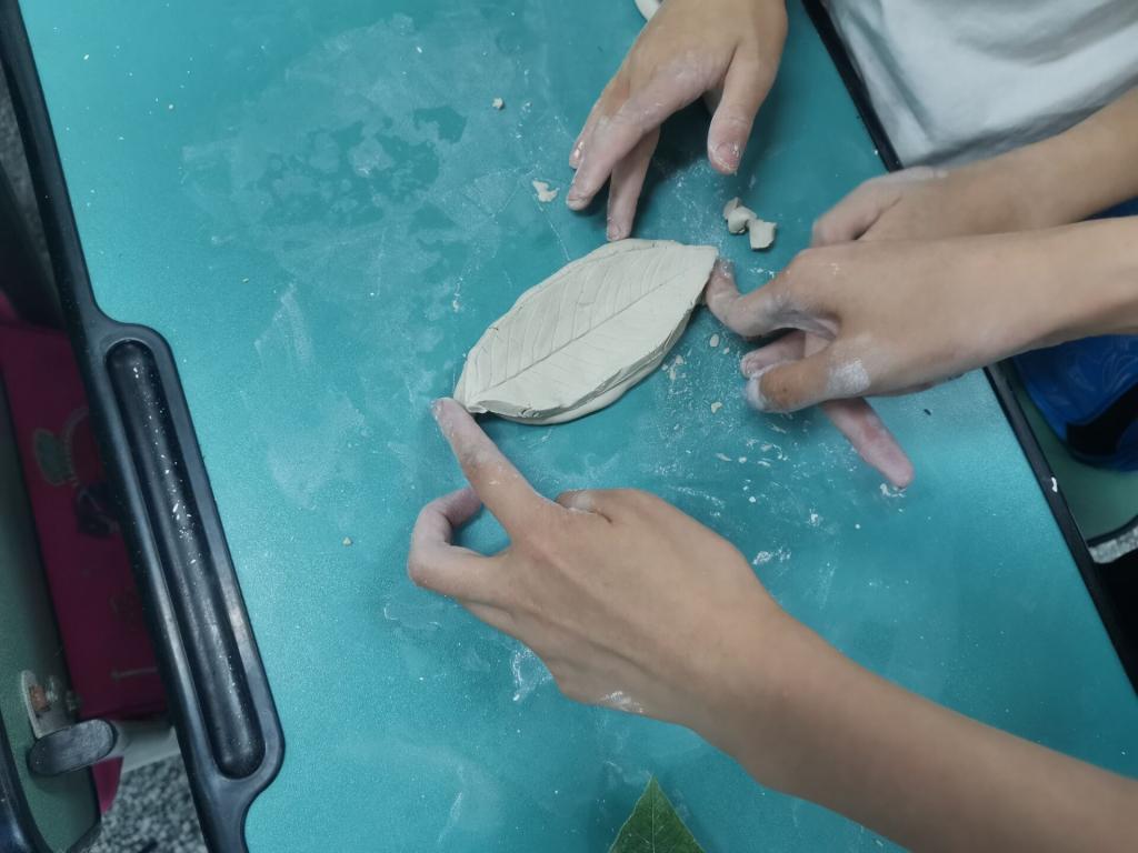 支教活动开始前,乔欢欢老师和安红娜老师向全体同学讲述了此次活动的意义。随后,开始了陶艺课,刚开始孩子们略有羞涩,同学们很快和孩子们打成一片,现场气氛非常活跃,大家对中国的传统文化以及陶瓷发展历史表现出了高昂的激情和兴趣。协会的同学们逐个给孩子们发放瓷泥,并通过趣味教学的方法,和孩子们交流如何用手中的泥块去创作自己独一无二的作品,不但调动了小朋友们上课的热情,而且还建立了浓浓的师生情谊。最后小朋友们以瓷泥为原料,以叶形盘为命题,发挥自己的想象力自由创造,用心制作,做出了许多观赏性佳的陶艺成品。