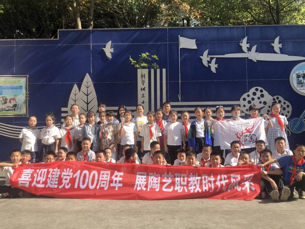 为庆祝中国共产党成立100周年,增强新时代老员工服务社区、服务社会的责任感,深入贯彻落实全国职业教育大会精神,大力弘扬劳动光荣、技能宝贵,进一步营造全社会关心支持职业教育的良好氛围,厚植小员工从小学党史、听党话、感党情、颂党恩、跟党走,爱党爱国爱社会主义的情怀。5月24日下午,材料工程系陶艺协会在协会指导教师安红娜的带领下前往四川省科学城第三小学开展了“喜迎建党100周年,展陶艺职教时代风采”瓷艺主题支教活动,材料工程系教工党支部书记乔欢欢老师和陶艺协会员工党员、员工入党积极分子、协会员工干部代表等共计10余人参加了本次活动。