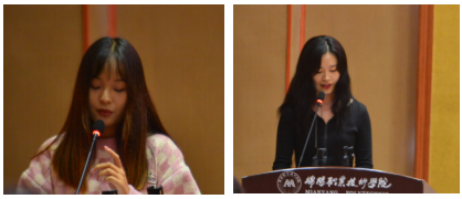上届团学干部代表原材料系团总支副书记张世均同学和原建工系员工会主席李珍洋同学作了发言。她们对学院领导老师表示感谢,对新任团学干部表达了祝贺、交流了工作心得经验、提出了更高的要求以及对材建学院美好明天的衷心祝愿。