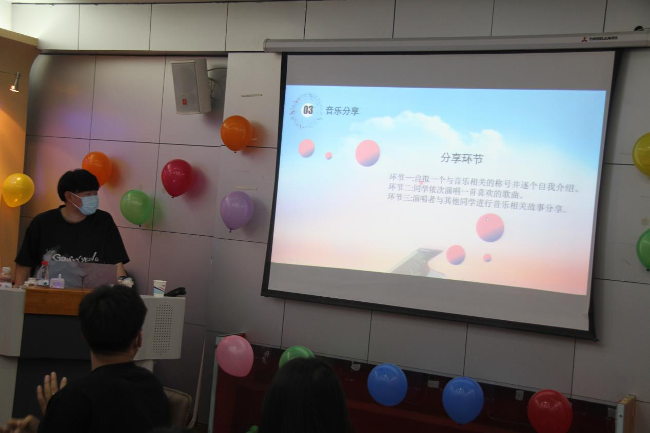 活动分为认知讲解环节、活动分享环节、经验总结环节。通过生动形象的演讲,让同学们认识到音乐不仅是一种艺术,也是一种文化,更是人类情感的升华,它具历史性、时代性和思想性,更具有德育、美育、智育等育人价值。通过角色扮演、才艺展示、故事讲述等活动充分发挥音乐陶冶情操、净化心灵、寄托情感、愉悦身心的功能,让同学们敞开封闭的心灵,纾解忧郁的心情,寻找短暂的栖息,拥有片刻的宁静,产生心灵的共鸣。通过倾听和分享来认识自我、发掘自我、表达自我、突破自我,增进同学们的感情,加强同学们的交流,提高同学们的能力。