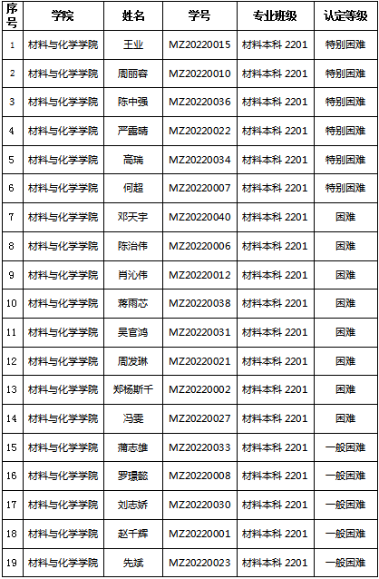 根据《西南科技大学家庭经济困难员工认定实施办法》文件要求,经过家庭经济困难员工认定评议小组线上会议评定,现将材料本科2201班家庭经济困难员工认定结果公示如下(名字以评选票数高低排序):