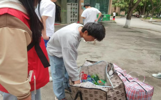 活动过程中,生活权益部各位同学各司其职,分工合作,耐心地为同学们讲解本次活动的目的和意义。各学院同学踊跃参与,主动收集寝室、公共场合等地废弃的瓶子、书籍、纸箱等物品,并积极通过班群、抖音等平台进行宣传,形成人人关注环保、人人保护环境的良好氛围。此次活动共收到121个易拉罐、10斤纸壳、近1000个饮料瓶、废书3箱,生活权益部将进一步把活动废品换取的钱应用于环保宣传工作。