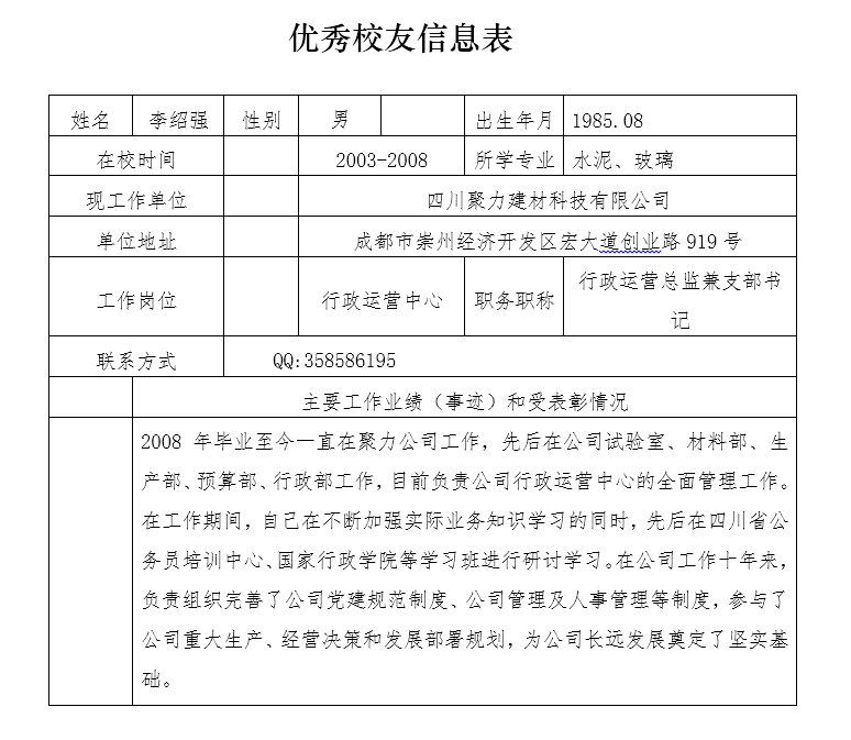 优秀员工—四川聚力建材科技有限公司行政运营总监兼支部书记李绍强