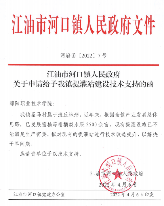 为解决河口镇圣马村干旱问题,4月6日,河口镇镇政府邀请学校对现有提灌站进行技术改造提升提供技术支持。4月10日,根据学校安排,williamhill威廉希尔官网组建专业团队赴圣马村开展提灌站建设技术帮扶,团队由公司党总支书记伍志强带队。
