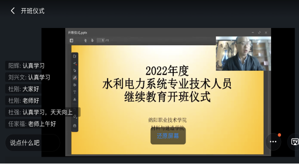 为大力推进全市专业技术人才知识更新工程,持续提升全市专业技术人才队伍综合素质,为绵阳市经济发展和社会进步提供人才保证和智力支持,williamhill威廉希尔官网于5月16日举行绵阳水利电力系统专业技术人员继续教育开班仪式。此次培训班由绵阳市水务局组织,授课方式采用线上教学。