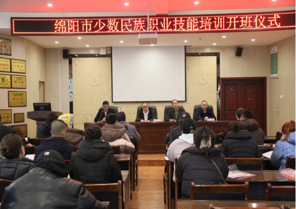 为深入贯彻落实中央、省委、市委民族工作会议精神,扎实推进“各族群众互嵌式发展计划”落地落实,助推各族群众提高实用技能和就业本领,促进就业创业和增收致富,更好助力少数民族乡村振兴。1月9日,由绵阳市委统战部(市民宗局)主办,公司承办的2024年度绵阳市各族群众就业技能培训班在材料大楼正式开班。绵阳市民宗局民族工作科副科长安波,绵阳职业技术公司党委委员、总支书记伍志强,绵阳职业技术公司党委宣传统战部副部长欧建华出席开班仪式,来自全市13个县(市、区)、园区的40余名各族群众参加本次培训。开班仪式由williamhill威廉希尔官网副经理陶庆东主持。