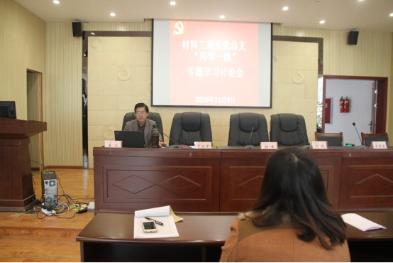2016年11月09日,料工程系党总支在崇实楼二楼会议室举行了“两学一做”第七次专题学习讨论会。本次专题学习讨论会由系党总支副书记豆祎主持,材料工程系全体党员教师参加了此次学习讨论会。