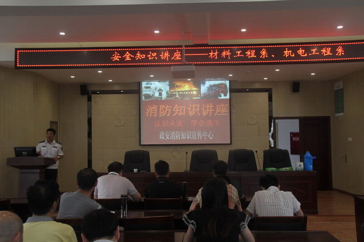 6月24日下午,材料工程系主任杨峰、党总支书记唐胜强,机电工程系副主任邓先智、党总支副书记王建平,以及两系全体教职工在崇实楼201会议室参加了消防安全知识专题讲座,本次讲座邀请到了绵阳市消防宣传中心的丁祖胜教官来担任主讲人。