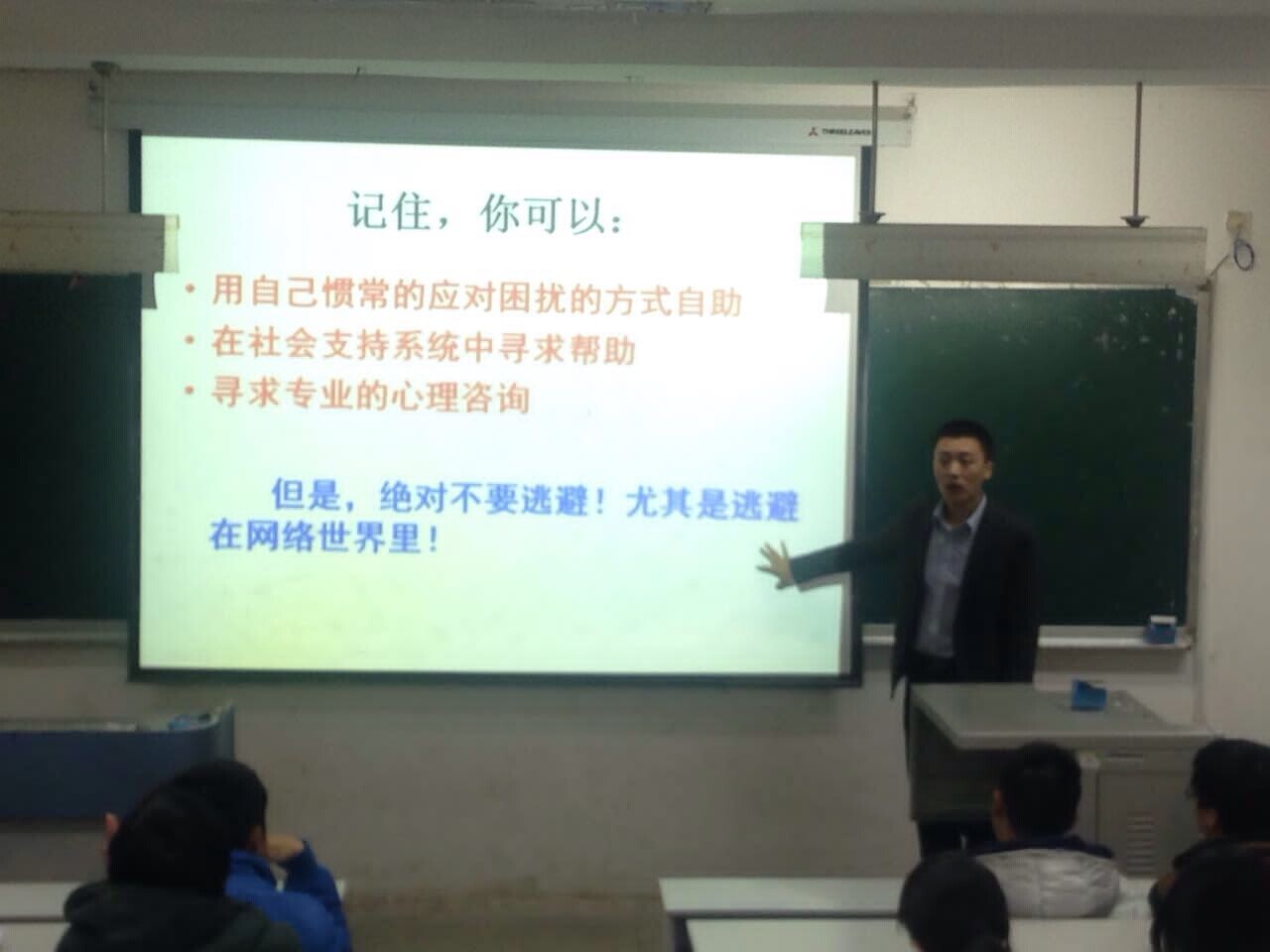 12月5日中午,材料工程系在ZB216教室召开了2014级新生心理培训大会,2014级各班心理委员及各寝室长参加了此次培训,由材料工程系团总支书记王昱程担任主讲。