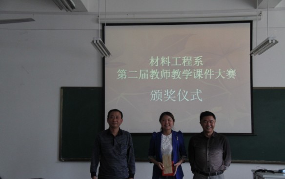 经过激烈的比赛,产生了以一等奖获得者杨娟老师为代表的多名教师获奖者。并一致推举杨娟老师代表材料工程系参加学院工会组织的学院多媒体课件大赛。