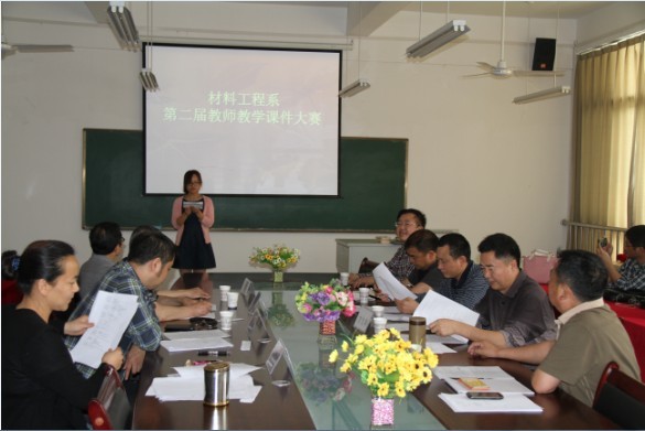 比赛中,参赛的教师们在有限的时间里用丰富的语言,充实的课堂设计,漂亮的多媒体课件展示了材料工程系教师在多媒体教学中的能力。