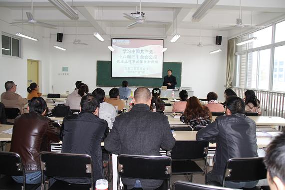 2013年11月13日下午,材料工程系党总支在崇实楼B204教室组织教职工进行政治学习,学习活动由党总支副书记史玉平主持。除4名老师担任正在公司进行的全国水泥行业化学分析与物理检测技能竞赛决赛评委外,其他教职工参加了学习活动。学习会上,首先由史玉平宣讲了《中国共产党第十八届中央委员会第三次全体会议公报》要点,随后,为大家播放了兰辉事迹报告团在北京进行的报告会录象剪辑。
