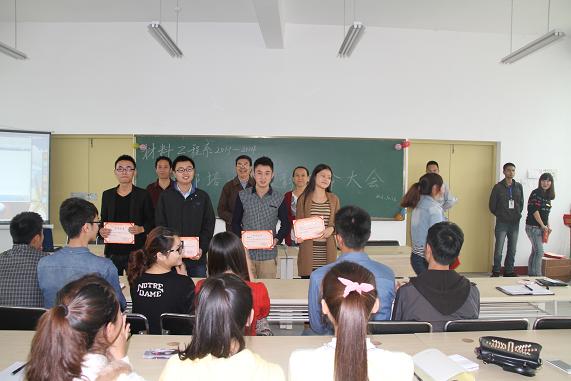 之后,主任助理任东燕老师宣读了《材料工程系党总支关于表彰2013-2014年度第一学期“优秀员工、优秀员工干部”的决定》。决定授予覃雪等10位员工为“优秀员工”称号,授予肖俊等22名员工为“优秀员工干部”称号,并号召全体同学向他们学习,推动材料系各项工作上台上水平。随后,王国修老师宣读了《材料工程系党总支关于罗阳等25同学为主要员工干部通知》。任命岳培、赵畅为团总支副书记,罗阳为员工会主席,蒋恒为员工会副主席,吴政峰等21名同学为部长、副部长。并希望被任命的戒骄戒躁,继续发挥模范带头作用,为我系员工工作做出更大的贡献。同时,要求新干事们以他们为榜样,努力进取,不断提高自己的能力和水平。
