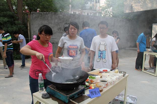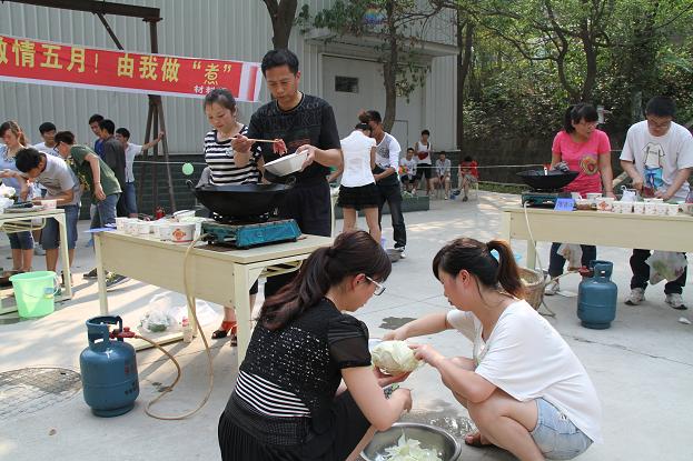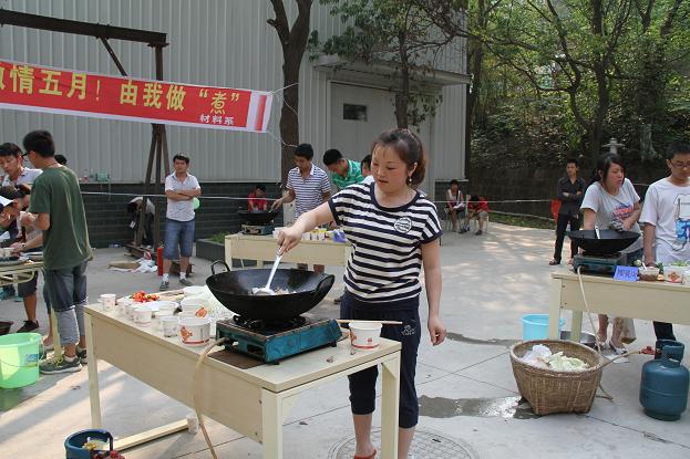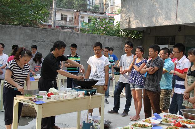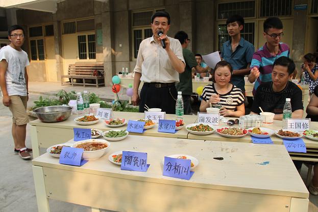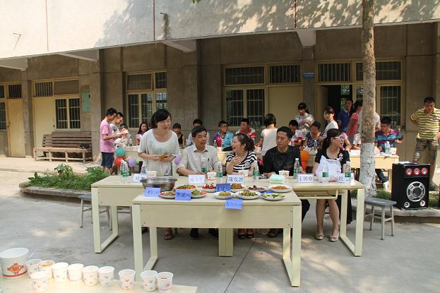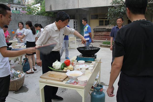 2013年5月22日下午,在材料工程系材料制备与控制中心院坝,一场由系员工会主办、纪检部和学习部承办的“激情五月,由我做“煮”的厨艺大赛由此拉开帷幕,大赛邀请了各系员工会主席作为嘉宾并担任评委。此次比赛共派出10个代表队参赛,员工干部队和辅导员代表队作为表演队参了此次比赛。系党总支副书记史玉平、员工干事王国修、团总支书记蒲发波、辅导员杨云清、段玉林、刘蹇到场助阵,纪检部和学习部的同学全程为大赛服务。