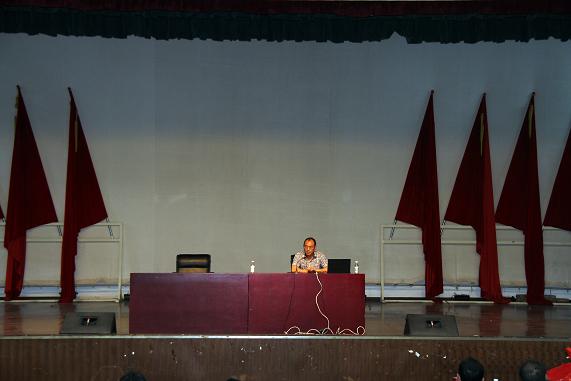 王庭刚先生在二个多小时时间里,满怀激情,声情并茂,理论联系实际,不时穿插经典段子和自己从业近三十年的人生感悟,从多方面为在场的师生们讲述了当代老员工如何构建和提高可就业核心竞争力的问题。在谈到员工应具备的基本素质时,他强调学好专业知识,通过多途径提升基本素质,努力成为复合型人才是增加就业筹码和竞争力的基础。他诘问在座学子,通过学习和实践,我们学到了什么?掌握了什么?是否具有将知识转化为生存发展的能力?告诫同学们:人生最痛苦的事是肚子里没货,人生最最痛苦的事是肚子里就那么点货。在谈到职业生涯规划时,他指出:机会总是留给有准备的人,老员工就业不是发挥出来的,而是准备出来的。在谈到就业合理定位和转变观念时他忠告大家:有多大脚穿多大鞋,不要盲目攀比,不求一步到位,要从基层做起,小事做起,先就业,后择业,待积累了一定的工作经验,具备了一定能力后再寻求进一步发展的机会。在说到提升维持就业和新就业机会与能力时,他给大家讲了公交车的定律,并就竞争力作了诠释:就是你要有别人所不具有的能力和水平,即眼睛能看得到的地方需要眼力,眼睛看不到的地方需要眼光;要具有别人更高的情商,要懂得在职场录用靠智商,提拔靠情商的道理,用智商做事,用情商做人;要明白知识不是力量,用知识才是力量这一至理名言。