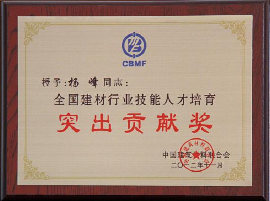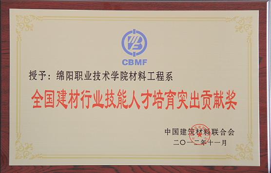 材料工程系及杨峰个人荣获“全国建材行业技能人才培育突出贡献奖”