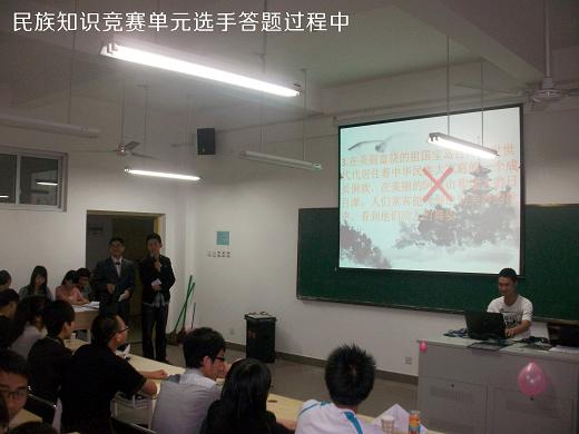 2012年6月27日晚7点。材料系团总支文艺部在崇实楼204教室开展了第二届民族文化知识竞赛。活动以“畅游民族风,携手共前行”为主题开展,这次活动用独特的娱乐、歌唱等形式让大家感受到了民族文化的魅力。整个活动准备充分,组织严密,音响话筒、多媒体、电脑一一俱全,精美的PPT也起了画龙点睛的作用。活动现场同时邀请了材料系员工会和团总支各部门领导作为嘉宾。