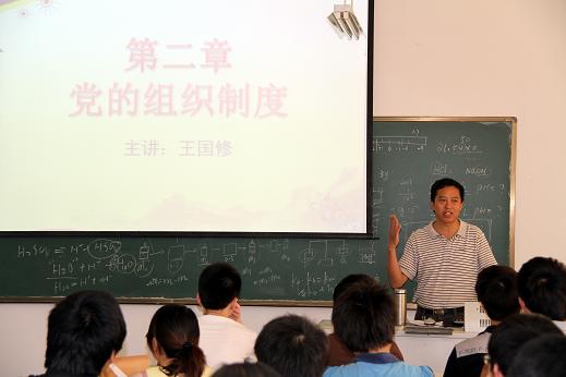 2012年6月7日下午,一堂《中国共产党章程》精读课正在学院崇实楼B204教室进行。本次课由系党总支组织委员王国修同志担任主讲,精读内容为《中国共产党章程》第二章《党的组织制度》,这是党总支开展精读《中国共产党章程》活动的第三课,全体员工党员参加了本次精读课。课前,员工党支部副书记陈露同志就课堂纪律提出了要求,并通知还没有加入系员工党组织群的党员同志们,尽快加入这个QQ群,以便可以通过QQ通知事项、组织活动,要求各党小组长组织好本组的学习和党员的管理等工作。