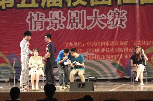 2012年5月29日晚,由绵阳市委宣传部、共青团绵阳市委、绵阳市教育体育局、绵阳市员工联合会主办的“绵阳市第五届校园社团风采节——情景剧大赛”在公司学术厅隆重举行。团市委学少部副部长杨杰,团市委学少部干部李洵,学院学工部副部长、团委书记曹艳等领导观看了此次比赛。本次大赛有来自西南科技大学、绵阳师范学院、四川幼儿师范高等专科学校、四川中医药高等专科学校、民航飞行学院绵阳分院、威廉希尔足球官网、西南财经大学天府学院共7支在绵院校参加。我系选送的《90后,成长》更是博得了大家最热烈的掌声并最终以9.34的高分荣获二等奖。