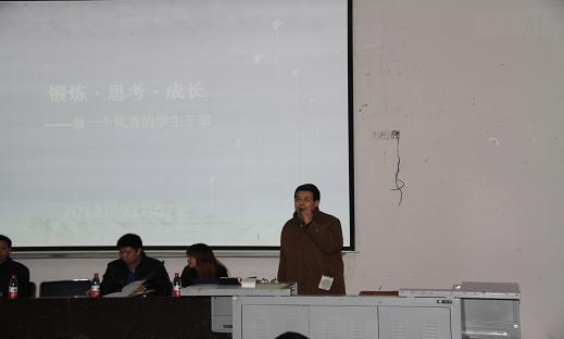 为加强材料系员工干部队伍建设,提升员工干部综合素质,打造一支言行堪为表率,敢于管理,善于管理的员工干部队伍,明确新学期工作目标,做好新学期员工管理工作,材料工程系于3月7日下午在学院第二阶梯教室召开全系员工干部培训会,会议由系团总支书记蒲发波主持,系党总支副书记史玉平、主任助理吴洪、员工干事王国修参加了会议。