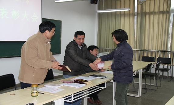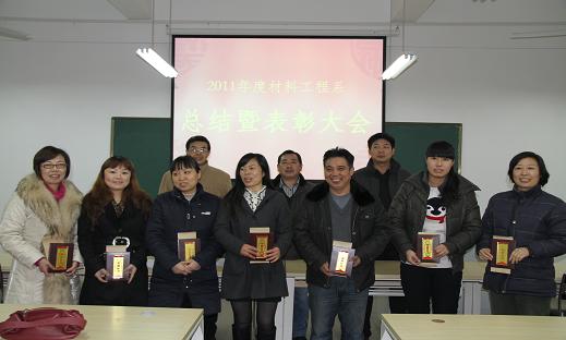系党政希望被评为优秀的同志要继续发扬努力奋斗、锐意进取的精神,再接再厉,争取在今后的工作中取得新的成绩。全系教职工要向他们学习,努力形成比先进、学先进、赶先进的氛围,为我系持续发展做出更大的贡献。随后举行颁奖仪式,杨峰、史玉平为材料工程系2011年度优秀教师颁发了荣誉证书和奖金,总结暨表彰大会在大家的热烈掌声中圆满结束。