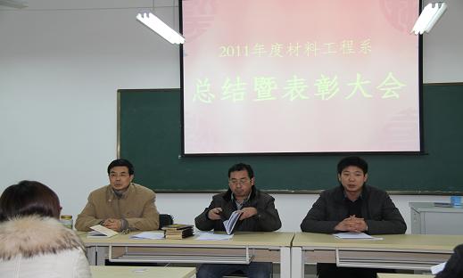 2011年12月29日下午,材料工程系在崇实楼B区204教室隆重召开了系2011年度工作总结暨表彰大会,主任助理吴洪主持大会。