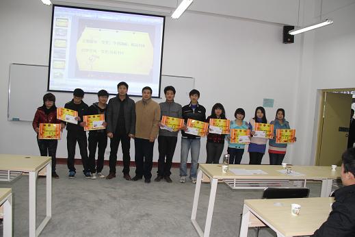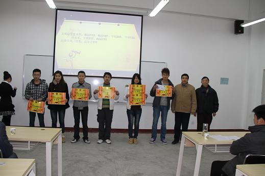 2011年12月28日下午,我系在崇实楼105举办了2011-2012-1学期“文明寝室”“纪律学风”评比总结表彰大会,副主任杨峰、副书记史玉平、主任助理吴洪,各班辅导员及员工分会、团总支主要干部出席表彰大会,各班级班长、团支书和室长参加了大会。