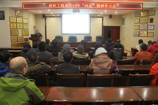 3月7日,材料工程系在崇实楼二楼会议室举行2019年“两会”精神学习会。材料工程系全体老师参加了本次学习会,会议由材料工程系主任助理贾陆军主持。