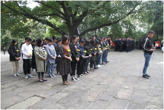 祭扫仪式中,师生们在烈士碑前宣誓,默哀一分钟,并怀着崇敬的心情向纪念碑鞠躬致敬,敬献花篮和献花,以表达对革命先烈缅怀之情,气氛庄严肃穆。