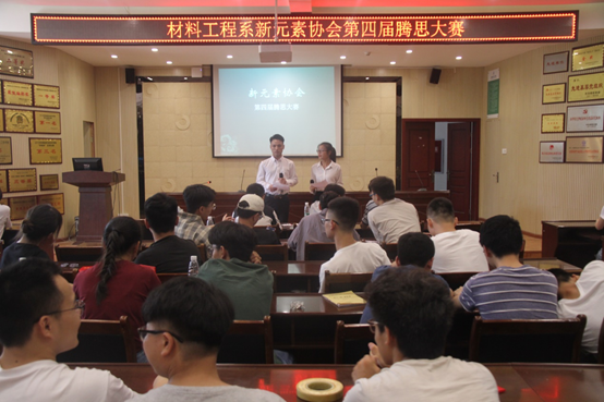 为了把课堂和实操更有效地结合起来,进一步提升协会成员的专业素养和实践动手能力,真正实现勇于创新、开拓进取、激发活力、完善自我的协会宗旨。7月1日,材料工程系新元素协会在崇实楼二楼会议室开展了第四届腾思大赛决赛,材料工程系党总支书记豆祎,主任助理贾陆军,新元素协会专业指导老师王启强、刘侨、唐云莅临本次比赛并担任比赛的评委。