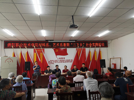 为深入学习贯彻习近平新时代中国特色社会主义思想,满足广大农民的精神文化生活需求,促进社会和谐发展,引领青年员工在社会实践中提高能力、增长知识,弘扬中华民族的传统美德。7月9日至7月10日,材料工程系党总支书记豆祎、团总支书记王昱程、社团活动负责人肖薇老师带领材料工程系2019年暑期“三下乡”社会实践队20余名同学前往四川省绵竹市兴隆镇广灵村开展暑期社会实践活动。学校团委副书记喻培杰、校团委老师郑园金秋一起参加了本次活动。
