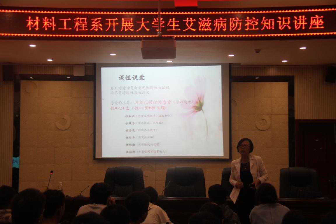 为了普及艾滋病防控知识,增强广大同学防控艾滋病以及自我保护的意识,9月25日晚,材料工程系在崇实楼二楼会议室开展了老员工艾滋病防控知识讲座,19级各班新生代表、各班心理委员等近100余人参加了本次讲座。本次讲座邀请了来自绵阳市集乐舒心理健康服务中心主任、全国精神卫生专家委员会专家委员罗立娟老师为同学们进行宣讲。