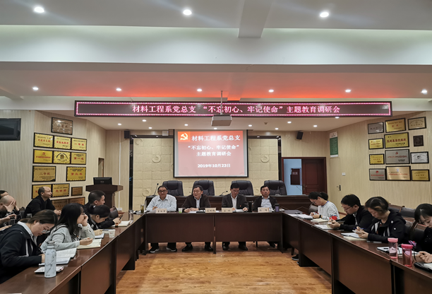为深入学习习近平新时代中国特色社会主义思想,贯彻习近平总书记关于“不忘初心、牢记使命”主题教育的重要讲话和重要指示批示精神,根据《中共威廉希尔足球官网委员会关于开展“不忘初心、牢记使命”主题教育的实施方案》(绵职公司党发﹝2019﹞51号文)的部署和安排,结合我系实际。10月23日晚上,材料工程系联系校领导、公司党委常委、副董事长左明扬赴材料工程系党总支开展了“不忘初心、牢记使命”主题教育调研会。材料工程系全体教职工参加了本次调研会。材料工程系党总支书记豆祎主持了本次活动。