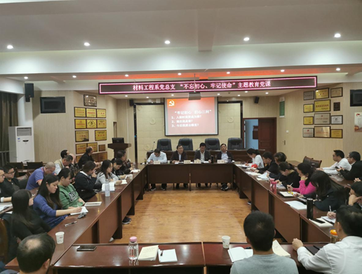 为深入学习贯彻习近平总书记关于“不忘初心、牢记使命”主题教育的重要讲话和重要指示批示精神,按照公司党委“不忘初心、牢记使命”主题教育总体部署要求,结合系部主题教育工作方案。10月23日晚上,材料工程系联系校领导、公司党委常委、副董事长左明扬到材料工程系为全体教师上了一堂题为《牢记初心 扪心三问》主题教育党课。材料工程系全体教职工聆听了党课。材料工程系党总支书记豆祎主持了本次活动。