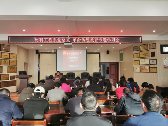 为深入学习习近平新时代中国特色社会主义思想,贯彻习近平总书记关于“不忘初心、牢记使命”主题教育的重要讲话和重要指示批示精神,不断加强革命传统教育和党性教育。根据《中共威廉希尔足球官网委员会关于开展“不忘初心、牢记使命”主题教育的实施方案》(绵职公司党发﹝2019﹞51号文)的部署和安排,结合我系实际。11月13日中午,材料工程系党总支在崇实楼202会议室开展了革命传统教育专题学习会。材料工程系全体教职工、部分员工党员、员工入党积极分子参加了本次学习。材料工程系员工党支部书记薛伟主持了本次学习会。