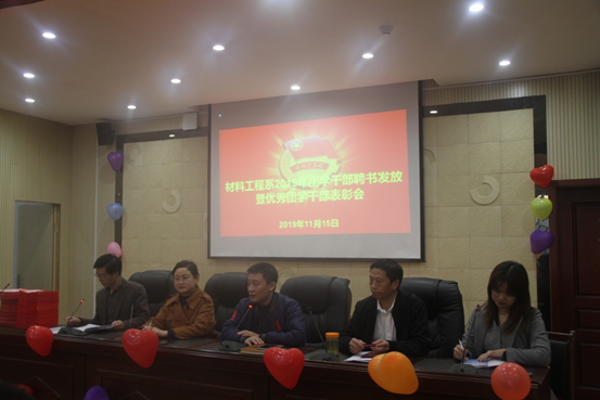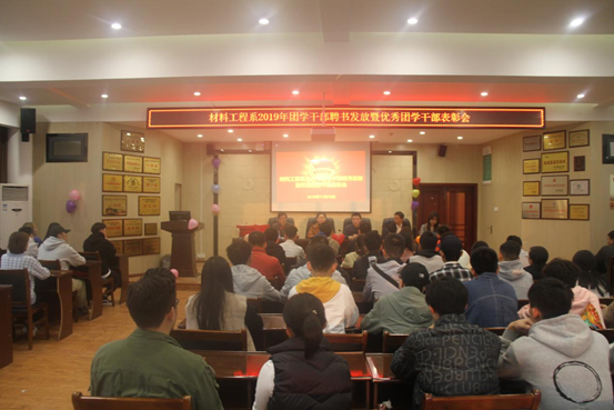 为表彰19级团学干部在过去一年工作中付出的努力,激发新一届团学干部的工作热情。11月15日下午,材料工程系党总支在崇实楼202会议室举行了2019年团学干部聘书发放暨优秀团学干部表彰会,材料工程系党总支书记豆祎、团总支书记王昱程、员工党支部书记薛伟、员工干事王国修、全体辅导员及大二大三团学协干部60多位同学参加。本次表彰会由系党总支书记豆祎主持。