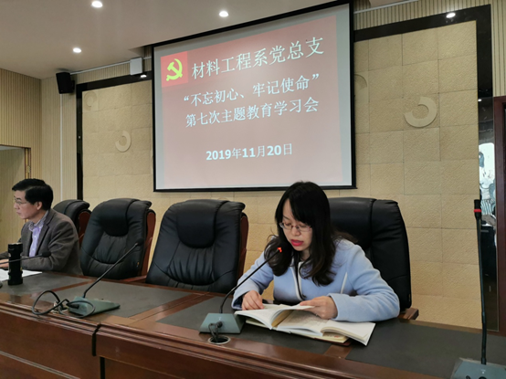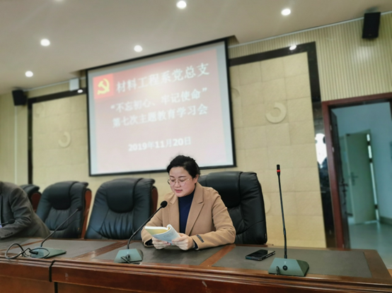 为深入学习习近平新时代中国特色社会主义思想,贯彻习近平总书记关于“不忘初心、牢记使命”主题教育的重要讲话和重要指示批示精神,根据《中共威廉希尔足球官网委员会关于开展“不忘初心、牢记使命”主题教育的实施方案》(绵职公司党发﹝2019﹞51号文)的部署和安排,结合我系实际。11月20日中午,材料工程系党总支在崇实楼202会议室开展了“不忘初心、牢记使命”主题教育学习会,材料工程系全体教职工、部分员工党员、员工入党积极分子参加了本次学习。材料工程系党总支书记豆祎主持了本次学习会。