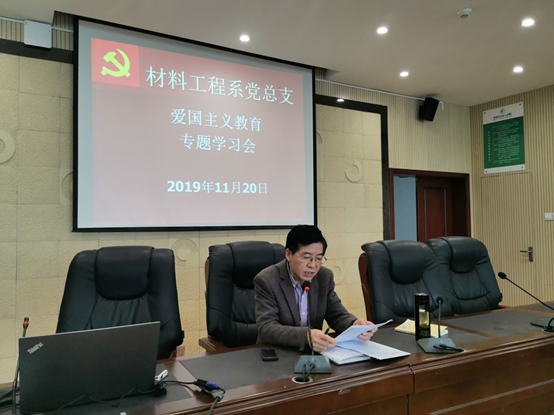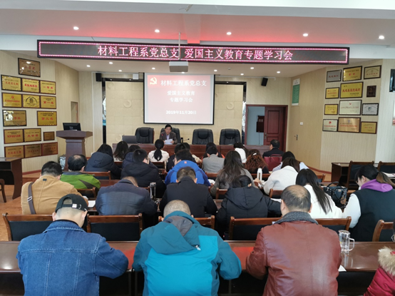 为深入学习习近平新时代中国特色社会主义思想,贯彻习近平总书记关于“不忘初心、牢记使命”主题教育的重要讲话和重要指示批示精神,将“不忘初心、牢记使命”主题教育同加强爱国主义教育、弘扬爱国精神结合起来,激发我系广大师生的爱国热情。根据《中共威廉希尔足球官网委员会关于开展“不忘初心、牢记使命”主题教育的实施方案》(绵职公司党发﹝2019﹞51号文)的部署和安排,结合我系实际。11月20日中午,材料工程系党总支在崇实楼202会议室开展了爱国主义教育专题学习会。材料工程系全体教职工、部分员工党员、员工入党积极分子参加了本次学习。材料工程系党总支书记豆祎主持了本次学习会。