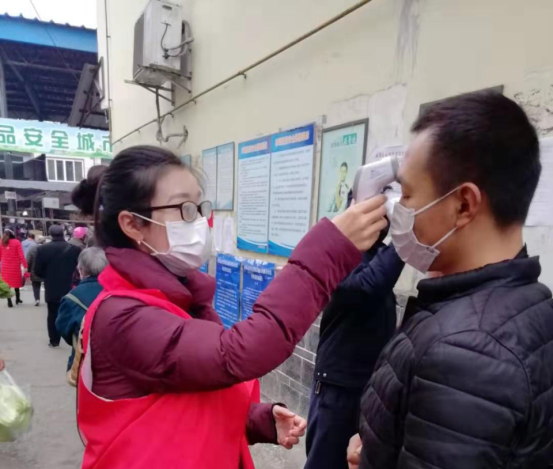 在卡点工作这么久,让我记忆犹新的还是在2月13日10点多, 我一如既往的为进入菜市场的居民朋友们量体温。我给一位男士量体温量出37.2℃,我开始慎重起来,我又给他测了一次是37.3℃,我问了他最近有没有咳嗽,身体有没有不舒服,他说没有。我说大哥测的温度有点高,你先在卡点休息一下,我等会在帮你测一测。