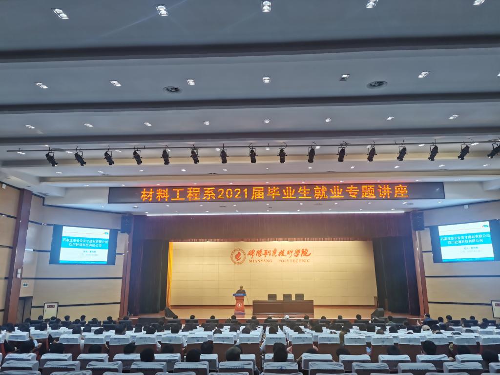 9月23日,材料工程系在学术报告厅举行2021届毕业生就业专题讲座,旨在帮助2021届毕业生充分了解当前就业形势,明确就业目标,找准自身定位,端正就业态度,提前做好就业准备。本次专题讲座的主讲人邀请的是石家庄市长安育才建材有限公司总经理助理、资深人力资源工作者、中级职业生涯规划师夏雨晴。同时在讲座现场还邀请到了石家庄市长安育才建材有限公司总经理王进春、副总经理王玉乾、人力资源部部长苏珊。材料工程系主任杨峰、党总支书记豆祎,就业干事、毕业班辅导员参加了此次讲座。材料系副主任贾陆军主持了本次活动。