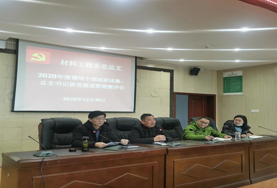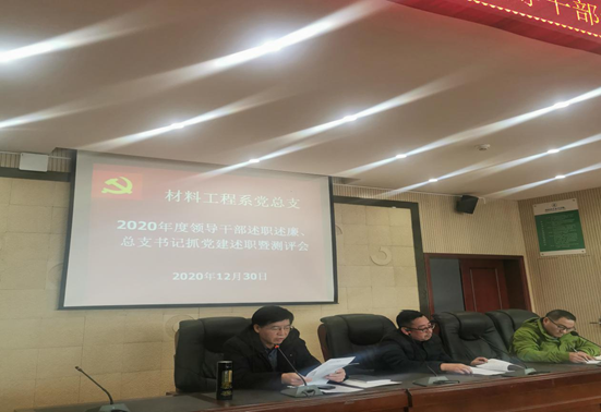 为深入学习贯彻党的十九届五中全会精神,全面客观准确评价院系领导班子及成员2020年度履职尽责和重点任务完成情况,总结经验,查找不足,切实增强院系领导班子的履职能力,推动2021年各项工作扎实开展。按照公司党委组织部的安排,2020年12月30日,材料工程系在崇实楼202会议室召开了2020年度领导干部述职述廉总支书记抓党建述职暨测评会。材料工程系党总支书记豆祎、系主任杨峰,副主任贾陆军,综合办主任董丽卿以及材料工程系全体教师参加了本次述职述廉测评会。豆祎主持了本次活动。