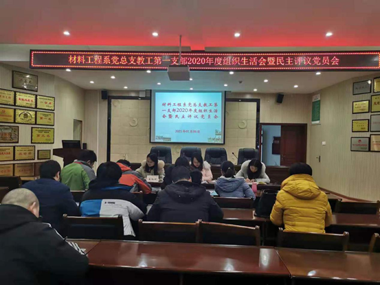 为深入学习贯彻习近平新时代中国特色社会主义思想,学习贯彻习近平总书记对四川工作系列重要指示精神和对绵阳对教育工作的重要指示批示精神,学习贯彻党的十九届四中、五中全会精神和省委十一届七次、八次全会,市委七届九次、十次全会精神,巩固深化“不忘初心、牢记使命”主题教育和巡视巡查整改成果。根据党章和《中国共产党支部工作条例(试行)》《中国共产党党员教育管理工作条例》等规定,按照省委组织部《关于召开2020年度基层党组织组织生活会和开展民主评议党员几个问题的通知》(川组通〔2020〕41号)和公司党委组织部《关于召开2020年基层党组织组织生活会和开展民主评议党员的通知》(williamhill威廉希尔官网组〔2020〕82号)等文件要求,1月6日下午,材料工程系党总支教工第一支部、教工第二支部、员工党支部分别在崇实楼202会议室和306会议室召开了2020年度基层党组织组织生活会并开展了2020年度民主评议党员工作。材料工程系各支部全体党员参加。材料工程系党总支各党支部书记主持了本次组织生活会和民主评议党员会。