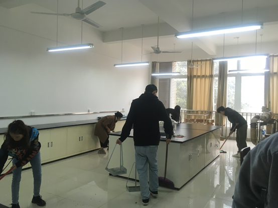 3月12日,在全系老师的带领下,我系组织员工对景观广场、四合院生产车间、材料大楼各实习实训室、办公室和员工寝室的清洁卫生进行了彻底的打扫。