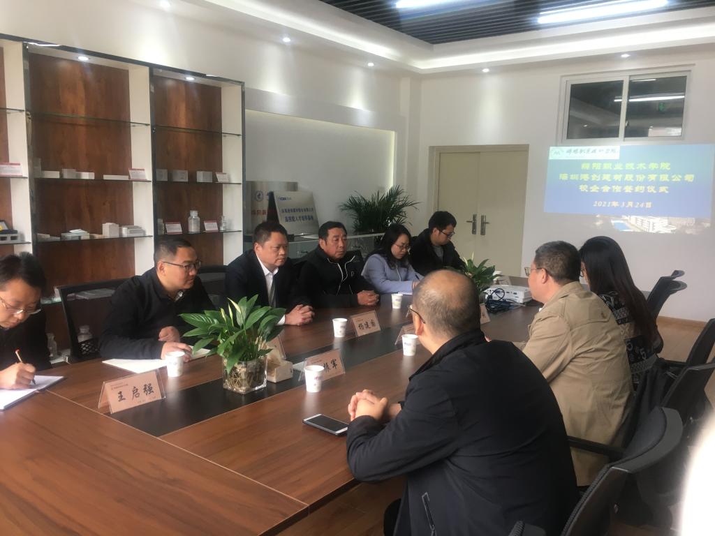 3月25日,深圳港创建材股份有限公司总经理助理、人事行政部总经理张立民,人事行政部副总经理冯振军和人事行政部招聘培训经理彭利专程来到公司洽谈合作,与副经理杨建国、材料工程系主任杨峰、副主任贾陆军等进行了深入交流。双方签订了《“产学研”合作框架协议》,在员工培养、毕业生实习和就业、科研项目等方面达成了共识。