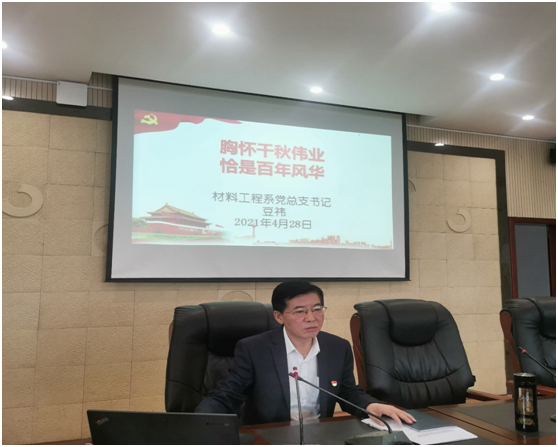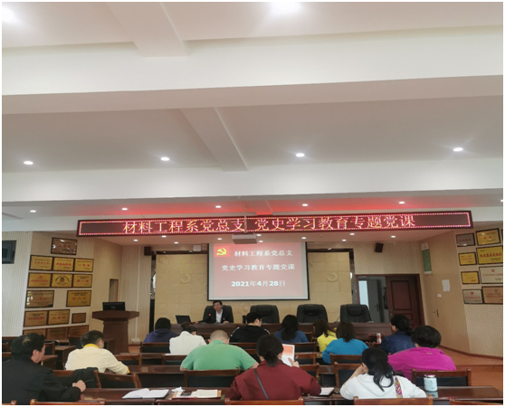 为做深做实党史学习教育,回顾党的光辉历程,坚定理想信念,真正做到学党史、悟思想、办实事、开新局,根据《中共威廉希尔足球官网委员会关于开展党史学习教育的实施方案》(绵职公司党发〔2021〕17号)的部署和安排。4月28日下午,材料工程系党总支书记豆祎在材料大楼202会议室举行了主题为“胸怀千秋伟业 恰是百年风华”的党史学习教育专题党课,材料工程系全体教师党员参加了本次专题党课。