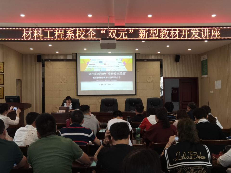 恰逢中国共产党成立100周年之际,为做深做实党史学习教育,落实“立德树人”根本任务,贯彻落实《国家职业教育实施方案》和全国职教大会精神,深入推进教师、教材、教法改革,进一步提升专业教师编写教材教辅的专业素养和业务能力,5月26日下午,受材料工程系的邀请,中国建材工业出版社资深编辑胡京平女士来公司材料工程系开展了“突出职教特色 提升教材质量”专业学术讲座,就建材类、材料类等专业教材、活页式教材、工作手册式教材和融媒体教材、教辅资料的编写出版和老师们做了经验交流和分享。公司党委常委、材料工程系联系校领导左明扬、材料工程系党总支书记豆祎、主任杨峰、副主任贾陆军和全系教职工近50余名老师聆听了讲座。贾陆军主持了本次活动。